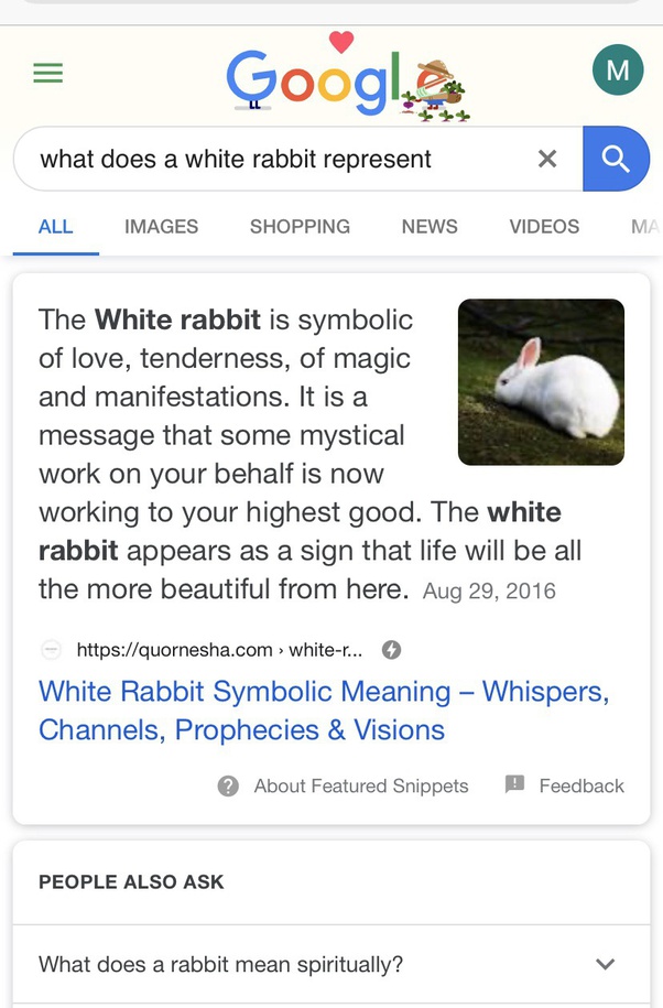 White rabbit symbolism. The white rabbit is symbolic of love tenderness of magic and manifestations. Both phrases are thought to. White symbolizes a burning up and a purification of these fears into a lighter path.